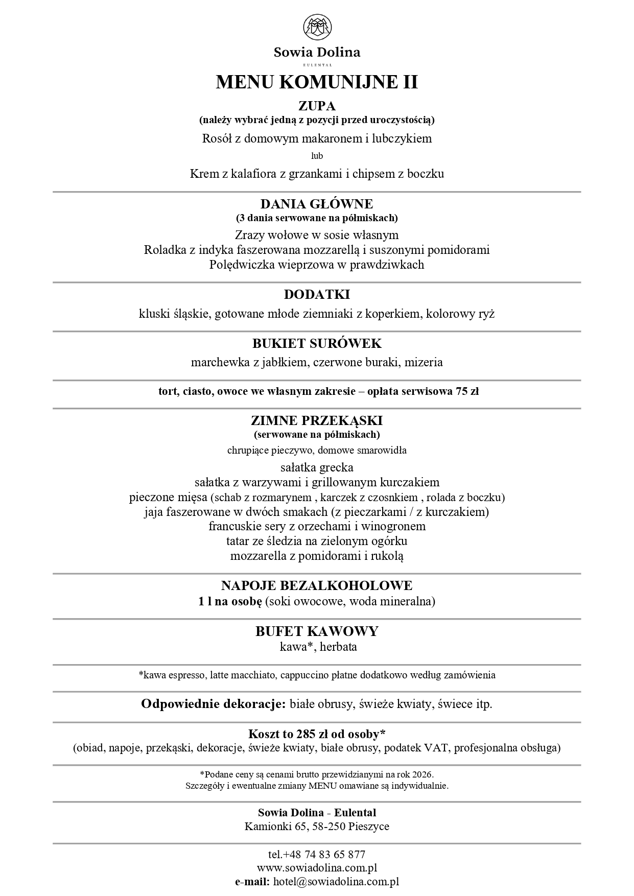 *kawa espresso, latte macchiato, cappuccino płatne dodatkowo według zamówienia